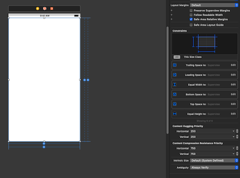 剩下就是利用自动布局往 contentView 中添加子视图, 需要注意在滚动方向上的最后一个子视图需要将其滚动方向上的边约束到内容视图上, 如下所示: